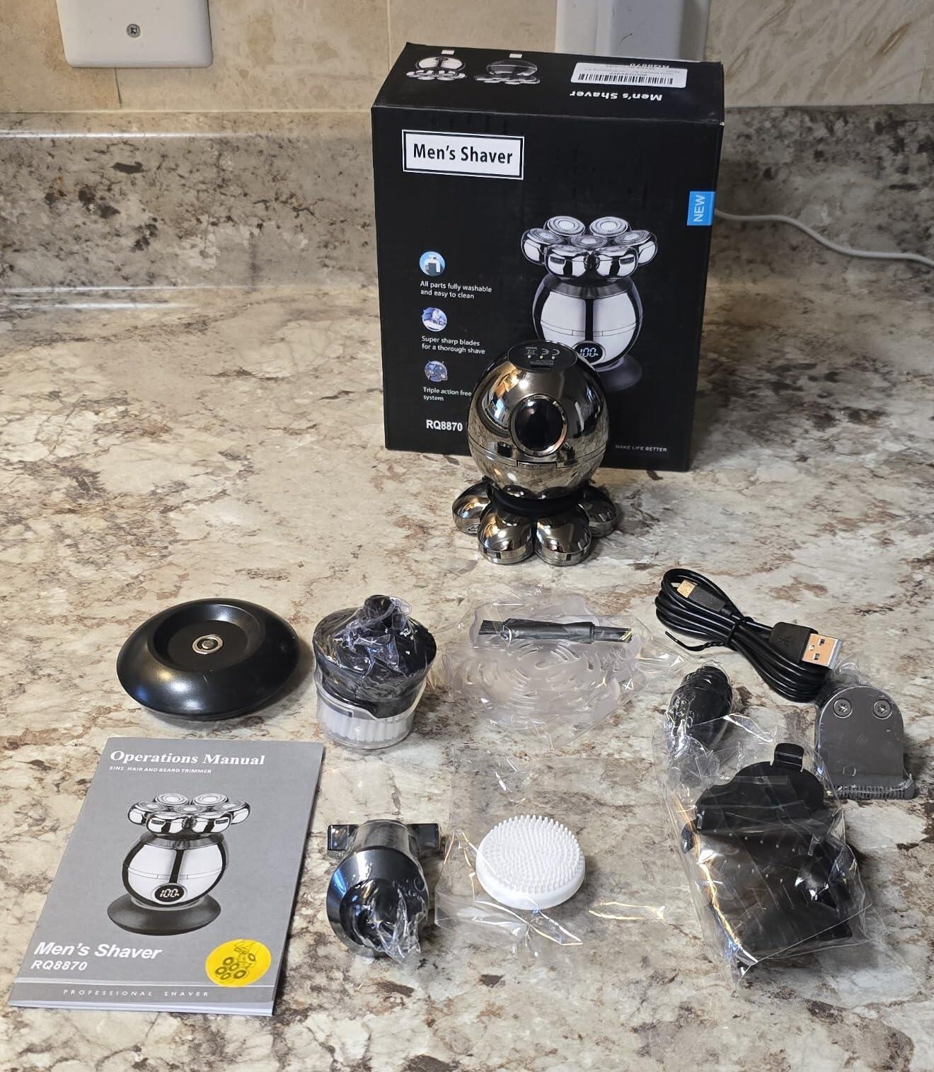 This head shaver has been an absolute game-changer! I got it to shave my dad’s head so he wouldn’t need to go to the barber anymore, and it’s exceeded all expectations. The 360° floating shaver head follows the contours of his scalp perfectly, giving a smooth, close shave every time. It’s incredibly easy to use, even for someone like me who’s not an expert.The 6-in-1 maintenance kit is such a great addition! The variety of attachments—like the nose trimmer and facial cleansing brushes—makes it super versatile. It’s not just a head shaver; it’s a full grooming kit that handles everything effortlessly.Cleanup is a breeze with the detachable shaving head, and being waterproof means it’s easy to rinse under the tap. The wireless Type-C charging is so convenient, and the LED display is a thoughtful touch that keeps you updated on battery life. Plus, a single charge lasts a long time, which is perfect for travel.This shaver saves us so much money by skipping trips to the barber, and it’s compact and efficient. It’s not just practical but also a joy to use. Highly recommend it for anyone looking to keep their grooming routine easy and effective!