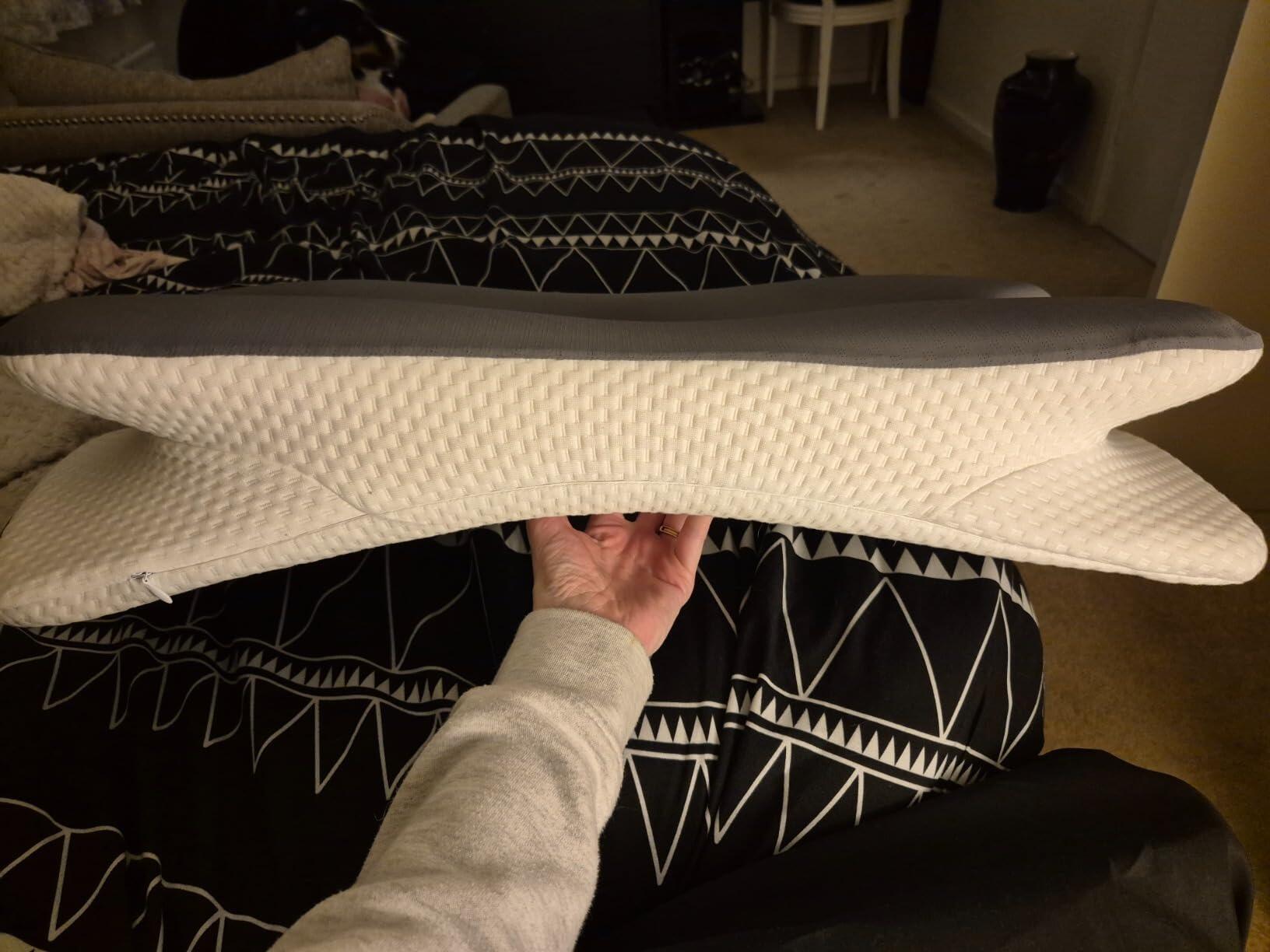I love the fact that I can move this pillow in two directions to find the perfect fit. I like having the option of a high and low neck position.The memory foam is solid yet supportive. It has helped a lot when sleeping in my back and side especially as I get some pain in my shoulder from sleeping in useless super soft pillows. Much better pain relief the next morning. I also like that I can put my hand under my head especially as I lie in it and read my kindle at the same time