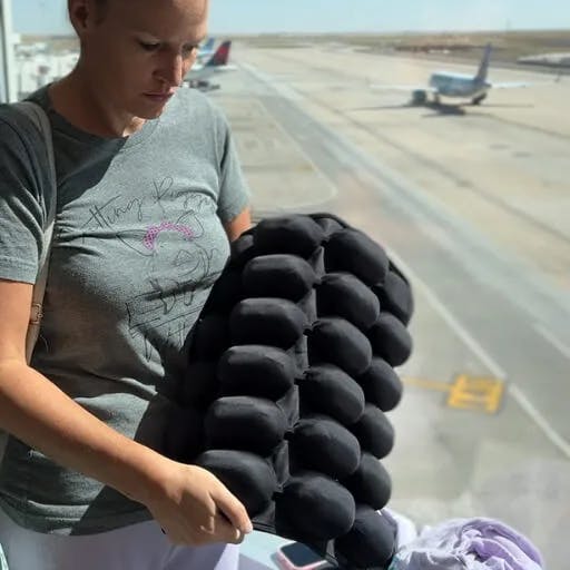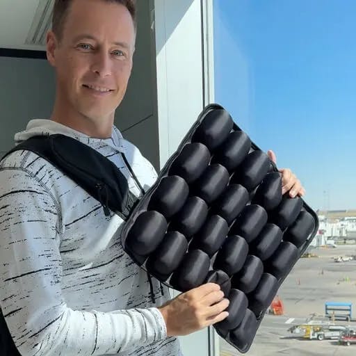 The travel cushion features 24 Air Cells that contours and hugs your bottom, redistributing pressure for unparalleled comfort and support. Even on the most thinly padded, uncomfortable seats, sitting on this cushion will feel like you're on a bed of soft, plush clouds, allowing you to sit comfortably for hours without back, bottom, or tailbone pain.