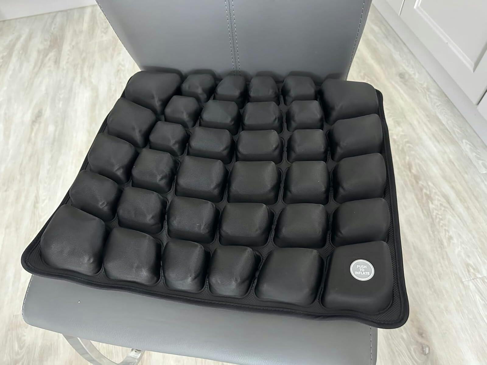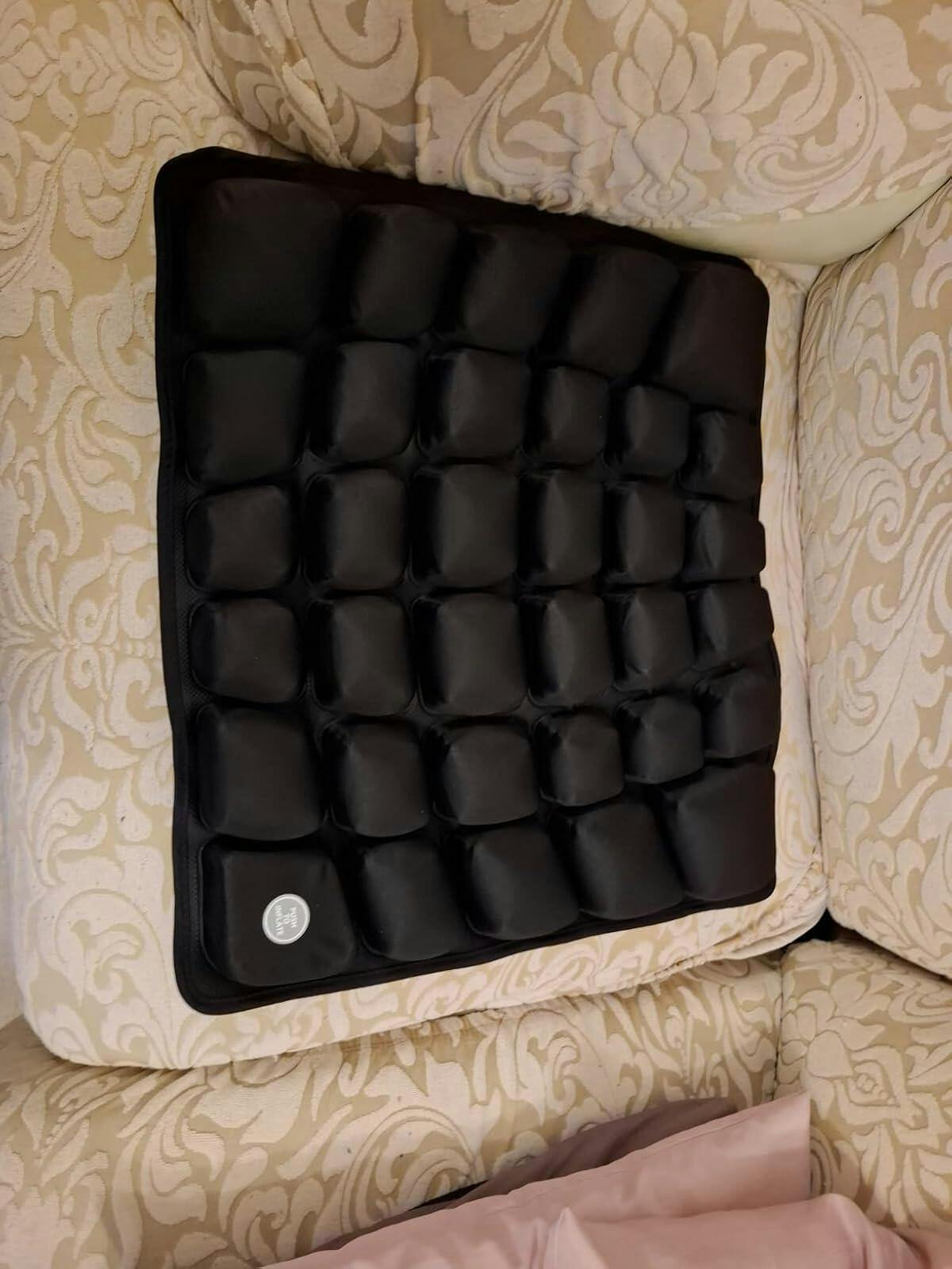 Mom was having issue with pressure sores forming from staying in her wheelchair for hours (by choice.) She has just started using so we hope this will help. There was a learning curve to closing the valve after pumping it up. Would have inflated easier with a second set of hands to close valve as soon as the last pump is done. I lost some air trying to do it both by myself.