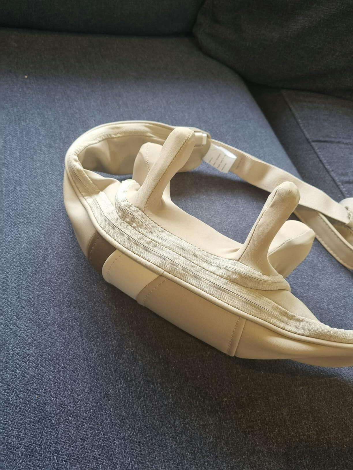 I have to say I was a bit sceptical but I took a chance on it. It actually works very well. The strap is a nice touch so you don't have to use the arm straps to keep it in place. I do use them to add extra pressure. It is pretty quiet and does a nice job It charges off USB C but includes a USB A to C adaptor. Another nice touch is you can unzip the massaging arm cover and wash it. A solid 5 stars from me so far.